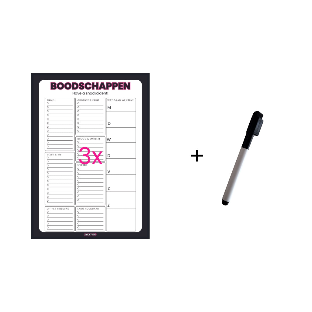 3x StickyCards Boodschappen + Whiteboard Marker